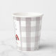 This cute and retro "fast one" boy's 1st/first birthday paper cup features a red race car on a white background with gingham/buffalo plaid in gray. Personalize it for your needs. You can find matching products at my store