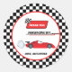 Fast one red retro race car theme boy's birthday classic round sticker
