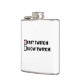The flask itself is fine. It’s a cheap flask, obviously bought in bulk, however am prepared to overlook that. Given that it is a personalized item, I would have liked to have seen gift boxing instead of the generic packaging. Terrible printing, and/or quality. It’s a cheap, tacky vinyl. It is not cut straight and is also applied in a way that it is overhanging the bottom, causing the glue to catch on items and it will eventually roll and tear, damaging the wrap.