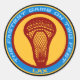 The sport of lacrosse - the fastest game on two feet. Circular emblem with silhouetted stick head.