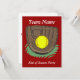 Background colours can be changed on front and back. Text style and colour can be changed.