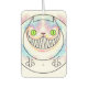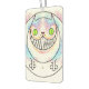Car air freshener with a fat cat grinning like a Cheshire Cat. A kooky and fat geometric cat.