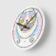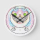 Acrylic novelty wall clock of a fat cat with a Cheshire Cat grin. A kooky and fat geometric cat.