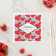 Cool Valentine's Day napkins with a repeating pattern of 2 different sized fat red hearts each heart surrounded by a white outer border. A diamond shaped frame layered over top with your text inside.