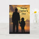 A beautiful sunrise with a father and his child in silhouette. The words Happy Father's Day above them.