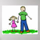 Father and daughter hold hands. The father's shirt reads "daddy" and the little girl's shirt reads "me". The family has blonde hair. The image comes in multiple ethnic family versions including a no colour drawing version too. Add your own words to the poster art print like "Daddy's Girl" or family names. Change the background art colour too! Customise this poster art print with your personalised greeting message to make special custom family character posters for Father's Day, new fathers, family reunions, or other special family holidays.