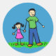 Father and daughter hold hands. The man's shirt reads "daddy" and the little girl's dress reads "me". Parent and child are Asian with light skin. This parent and child family picture also comes in multiple ethnic family options including a simple line drawing Personalise the family sticker decals with family names or a personal message for special father or daddy and daughter decal gifts! You can make custom family stickers for a special Father's Day gift, new Daddy and/or new baby, Family Reunion or other customised family art gifts!