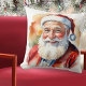 A fun and festive throw pillow with a portrait of Santa in a watercolor style. The reverse side of the cushion is bright red, with 'Merry Christmas' greeting in elegant script typography. Personalise with your own message for an individual finishing touch. An ideal gift for the holiday season.