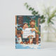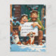 This is a super-cute postcard to send holiday wishes or invites. In this design there is a father and his son sitting on the porch of their home under snow. There are also two dogs and all of them are cheerful. You can customise the text on the banner for your needs.
