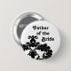 A black damask motif with a heart on white. Shown here on a chic pin on button for the Father of the Bride.
