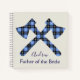 Show off your father of the bride how much you appreciate him with this creatively designed notebook. Featuring "Father of the Bride" written at the bottom with his name written above, there is a double crossed blue and grey plaid axe that is eye catching. Place your order today!