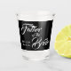 A great barware gift for the Father of the Bride! Shot glass with bride and groom names and wedding date with "Father of the Bride" printed in stylish, white script on a black background. Personalize your shot glass by editing and replacing bride and groom names and wedding date with your own.