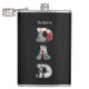 The flask itself is fine. It’s a cheap flask, obviously bought in bulk, however am prepared to overlook that. Given that it is a personalized item, I would have liked to have seen gift boxing instead of the generic packaging. Terrible printing, and/or quality. It’s a cheap, tacky vinyl. It is not cut straight and is also applied in a way that it is overhanging the bottom, causing the glue to catch on items and it will eventually roll and tear, damaging the wrap.
