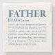 Father, noun: a male parent; an inspirational person, loved, emulated and admired; one who supports, guides and encourages his children; a man of exceptional patience, kind and understanding; often referred to as a daughter's first love; often referred to as a son's first hero.