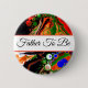 Boy's baby shower dad to be black, orange, green and blue marble fluid art button.