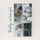 Father with Kids and Family Dad Photo Collage puzzle. Collage of 6 photos, father`s name with a sweet message in a trendy script and names of children that overlay the photos. Add your 6 favourite family photos. Sweet keepsake and a gift for birthday, Father`s Day or Christmas for a dad, new dad or grandfather.