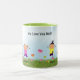 Cute stick figure art mug for Dad on Father's Day or other occasion. Features two girls and names on on a grass and sky background and heart flowers.. Personalise the formatted text. Other styles available in this collection.