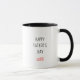 Father's Day mug for dad with descriptive words, including fun, caring, patient, helpful, clever, provider, with certain letters which spell out "FATHER" with rabbit, heart, arrow and light bulb doodles. Change "Happy Father's Day" to another occasion and add current year.