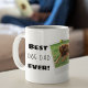 Great product, good delivery time, and an awesome idea for a gift! It was even better than I could have imagined, the customisation is incredible. The colour is perfect, it's dishwashable and microwaveable, the text print on the mug looks exactly like I wanted it to look and best of all, it's a large sized mug that you can drink plenty of coffee or whatever you want! I gifted this to my father and he loves it. He drinks coffee with that mug everyday :) I recommend.