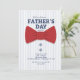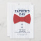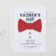 A handsome invitation to celebrate Father's Day with. The card features a striped shirt with a chequered-red bow tie and two buttons.