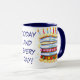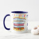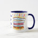 A good quality white ringer mug with dark blue rim and handle. The handpainted design is a Father's Day Cake and a reminder that every day is 'Father's Day'. See also matching greeting card and apparel. Dishwasher and microwave-safe.