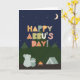 Father's Day's Day Card for Abbu. You call your father Abbu, not Dad. (Abbu means father in Urdu.) So get your Abbu a Father's Day card made especially for him! This cute outdoorsy card is perfect for any Abbu who loves camping, nature, the outdoors, and looking up at the stars in the night sky with his kids. The Father's Day card features a father bear and a child bear sitting outdoors by a campfire and tent in the wilderness looking up at the stars in the sky and the mountains. The cute Scandinavian-style text reads: Happy Abbu's Day!