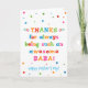 You call your father Baba, not Dad. (Baba means father in Bangla / Bengali, Farsi, Urdu, Mandarin Chinese, Turkish, Marathi, Welsh, Kiswahili / Swahili, Albanian, & Luo.) Imagine how excited Baba will be to receive a Father's Day card addressed especially to him! Your baba also will love this card's bright, colourful design which says "Thanks for always being such an awesome Baba! Happy Father's Day!"