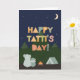 Father's Day's Day Card for Tatti. You call your father Tatti, not Dad. (Tatti means father in Yiddish.) So get your Tatti a Father's Day card made especially for him! This cute outdoorsy card is perfect for any Tatti who loves camping, nature, the outdoors, and looking up at the stars in the night sky with his kids. The Father's Day card features a father bear and a child bear sitting outdoors by a campfire and tent in the wilderness looking up at the stars in the sky and the mountains. The cute Scandinavian-style text reads: Happy Father's Day, Tatti!