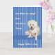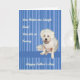 Father's Day card from the pet dog. The dog on the card is all white and has a smile on his face. The background is blue and lighter blue stripes. Thanks to Creative Fabrica for the design of the background.