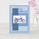 A great card for Father's Day. A blue motor cycle on an abstract blue background. The front says "Happy father's day". A great card for someone who is a motor bike enthusiast. The textures on the front of this card are printed.