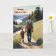 Image and ai assisted and finished in Adobe Photoshop. Young father and small son walking the trail to a favourite fishing spot. Watercolor art. Customisable text, Change inside text to express your own thoughts. Downloadable e card. Personalised