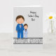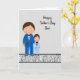 Cute dad and son on a striped grey background with an ink drawn border for them to stand on. Son and Mum are letting Dad know that they are going to take him to his favourite restaurant. There is another version of this design with a dog added. The inside words can be changed. Thanks to Commercial Use Scraps and the Hungryjpeg for some of the elements in the design.