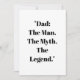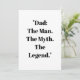 “Dad: The Man. The Myth. The Legend.” is the perfect gift for Father’s Day, birthdays, or any day you want to honor an amazing dad. Ideal for t-shirts, mugs, and greeting cards