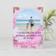 This Father's Day greeting card features a heartwarming beach scene where a father walks hand-in-hand with his young daughter along the shoreline under a blue sky. The central image is framed by a soft, pink, watercolor-like floral border, giving the card a warm and tender feel.