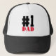 Give Dad bragging rights with this black and white trucker hat. "#1 Dad" is set in bold black and red modern type across the front.