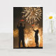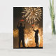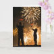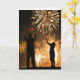 A young boy and a man stand in silhouette against a backdrop of vibrant fireworks, each holding American flags for Father's Day.