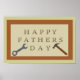 This awesome poster features a digital art image of a wooden desk with a group of wooden letters on it that spell out the words Happy Fathers Day. Each of the letters has a series of nails hammered into it. There is also a spanner on one side of the sign and a hammer on the other side. A great design for any handyman Dad who loves to make things.