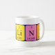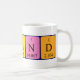 Fatlind spelled out as F At Li N D (Fluorine Astatine Lithium Nitrogen Deuterium) on a mug for the scientist in you.