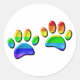 Faux 3D Rainbow Dog Paw Prints Classic Round Sticker
