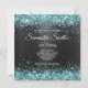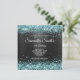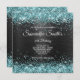 Faux Aqua Glitter and Black Foil 40th Birthday Invitation