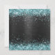 Faux sparkly aqua teal glitter against a faux black brushed metal foil graphic image.