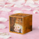 Customize the rustic chic Faux Barn Wood Pink Daisies and Cowboy Boots Wedding Favor Box with the personal names of the bride and groom and marriage ceremony date and fill with the party favors or small gifts for your guests. These casual yet classy custom ranch theme favor boxes feature a quaint floral photograph of brown wood grain, pink daisy flower blossoms, brown leather western cowboy boots and a white bridal veil. Perfect inspo or idea for an informal and elegant engagement barn party, bridal shower or marriage reception theme.