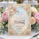 Transport your guests to a romantic era with this ethereal design featuring a vintage cherub and soft pastels. Perfect for an elegant spring celebration.This design features a sophisticated composition reminiscent of 18th-century art. An ornate, printed frame mimicking the look of beige marble and architectural bas-relief molding borders the layout. Inside the frame, a dusty blue sky background sets a celestial tone, overlaid with a vintage illustration of a cherub angel playing the violin. The scene is accented by soft apricot roses, white daisies, and sage green foliage. The text is presented in a formal, elegant script.This is a flat printed image with a faux stone texture effect, not actual raised material or 3D embossing.