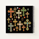 Add a touch of Christian bling to your desktop with this elegant notebook with its design of colourful faux birthstone-encrusted budded gold crosses and loose, unmounted gems on a black background. + WYSIWYG + NOTE WELL: All elements of this item are flat, 2-dimensional, and PRINTED! No actual gemstones or metals are used in its production. + Image Credits: The gemstones have been extracted from two antique postcard series: 1) the Lucky Horseshoe Birthstone series, originally published by Adelbert Kohn, Philadelphia, Pennsylvania, 1907; and 2) the Gem Birthday (“star”) series, originally published by the Art Manufacturing Company, Amelia, Ohio, 1908-1915. Both postcard series are from the designer’s private collection. + The pearls are licensed clipart from Shiny Pearl 2 pack by Lary Cao.