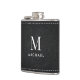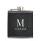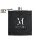 Faux Black Leather Monogram Initial & Name Hip Flask