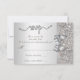 Personalised formal custom RSVP flat note cards for any event - weddings, baby showers, birthday party, sweet 16, Quinceanera celebrations, engagements, bridal shower etc. Elegant custom silver double sided rsvps with a beautiful sparkly printed glitter, rhinestones, sequins pattern, cute shiny printed vector bows and ribbons and pretty, stylish printed image diamonds bling jewels and fixed romantic rsvp text with curls and hearts swashes. These classy glamourous, fashionable silver cards are decorated on both sides. Beautiful, chic, trendy, modern double sided cards with glitz and glamour. Please note: All invites on Zazzle have flat printed images. I have matching products in my store. Text, font and colours of font are all personalizable / personalisable to meet your needs. If you need assistance customising your product please contact me through my store. I will be happy to help.PLEASE NOTE:- All invitations on Zazzle have flat printed images - not real bows, diamonds or sequins.