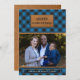 Faux Brown Leather Blue Buffalo Plaid Christmas Holiday Card