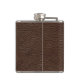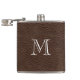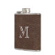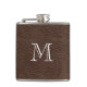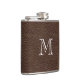 Simple, classic and elegant Faux Brown Leather Monogram Stainless Steel Flask. Great for Dad, Father of the Bride and Groomsmen gifts. Customise the text Monogram to match each person's name.