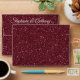 Faux burgundy glitter wedding envelope. The design features a trendy burgundy glitter texture, the bride and groom's names and the address.
