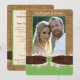 This gorgeous, modern and rustic monogrammed country wedding invitation with a photo template, in colours of apple green, ivory, and brown has a PRINTED ivory floral lace band below a dark brown PRINTED satin look ribbon and bow on a FAUX burlap sack background. All the text is customisable so you can change to suit your occasion or special event. It's perfect for a casual or informal rustic country spring, summer, autumn, or winter wedding. The invitation is shown here on basic paper with a ticket shape, but it would look lovely on recycled, linen, felt, or metallic paper in. If you want a nice heavyweight textured feel, choose felt paper in bright. ****PLEASE NOTE that everything will print as it appears on your monitor, so if you have typos, alignment, or sizing issues, please contact me for help BEFORE you order. I can't help with anything once the order has been placed with Zazzle. If you need any other matching items, or of you want it in another colour combination, please email niteowlstudio@gmail.com.